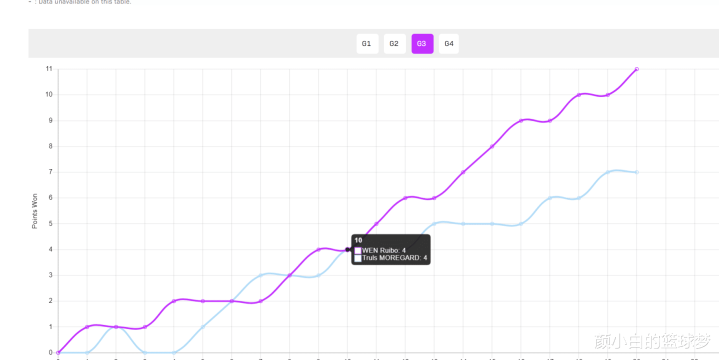 第三局开场局势就完全不同,两人鏖战到4-4后温瑞博6-4反超,随后温瑞博9-5领先,最终温瑞博11-7拿下。